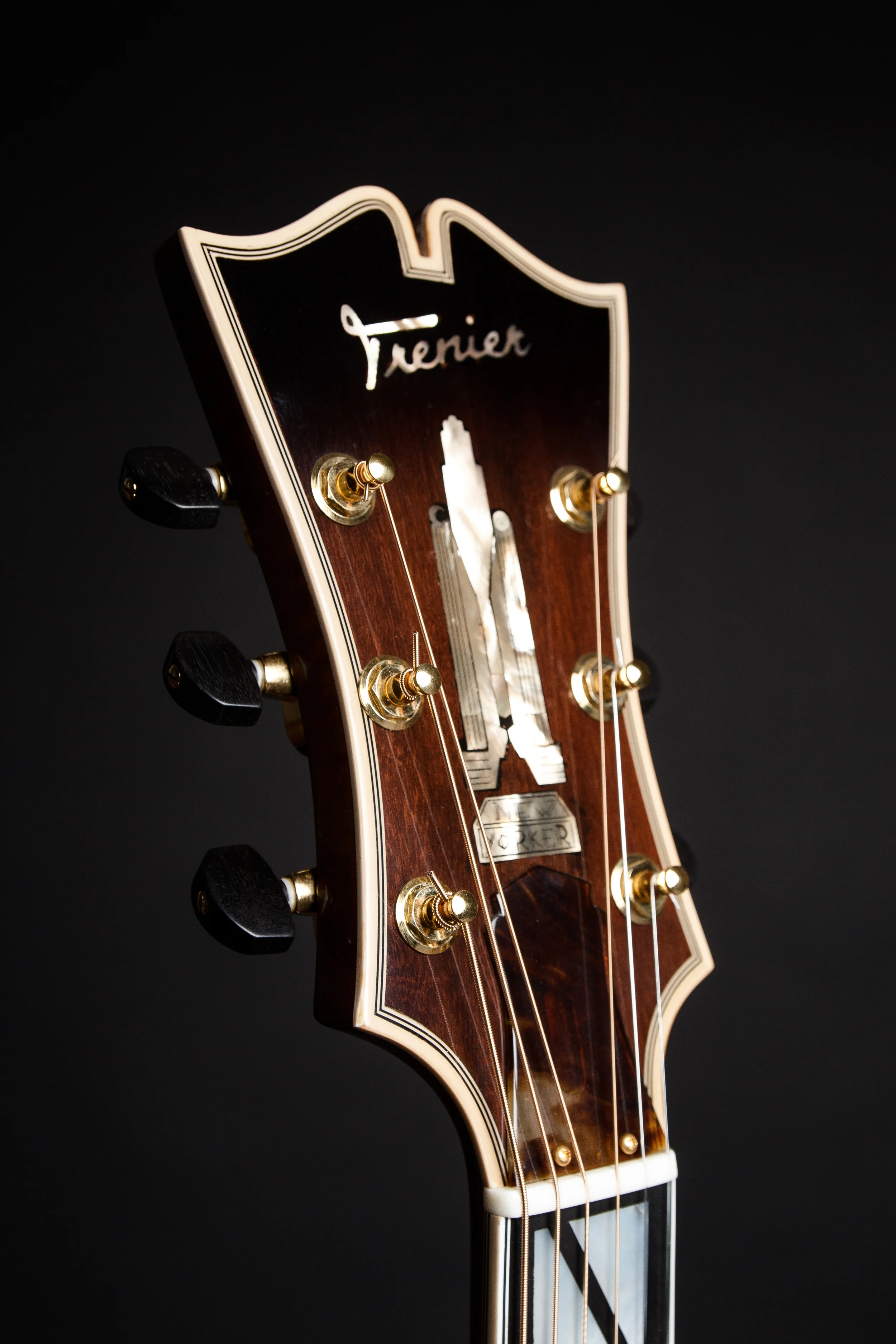 There is a 1989 DʼAquisto Jazz Special that I have been maintaining for several years, and in the spring of 2015, I set out to replicate that instrument. I was looking for the lush, beautiful tone that that instrument provided, in the same small package. I set out to make my own laminated plates, and the guitars came together beautifully. I am even offering an “acoustic” version of this small laminated guitar. A floating pickup can be added, or it can be played free of electronic amplification, as the tone is balanced, warm, punchy - really quite remarkable.